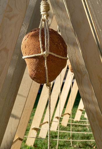 De esta manera, CIRCUM se resuelve mediante el uso de sólo tres materiales elementales: madera, cuerda y piedra, prescindiendo de terceros elementos de unión. De esta forma, la madera se vincula entre sí a través del encaje; la cuerda construye por un lado un elemento de tracción para el módulo, y a su vez, es la pieza de enlace para la incorporación de la piedra en la instalación. De este modo, todo el material empleado es una evidente alegoría a los materiales más primitivos y elementales empleados en la arquitectura.